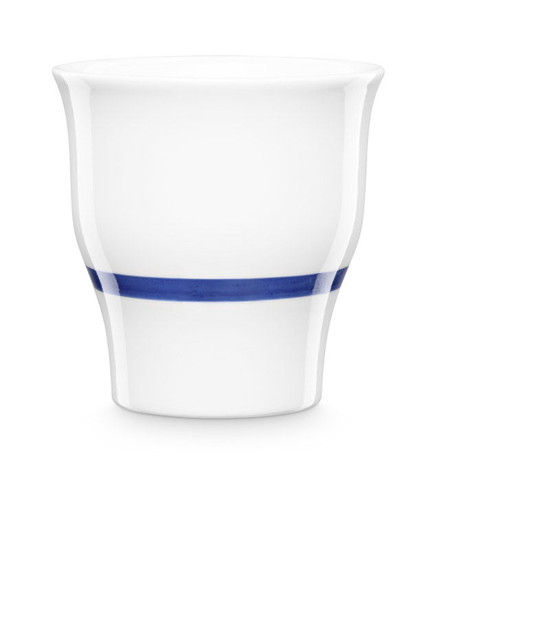 This elegantly designed cup is a special edition of Christian Metzner’s Trinkbecher NYX. A fine, cobalt blue line is manually applied to the cup at one third of its total height. The classic, slightly curved shape sits well in the hand and is a treat for the eye making it an ideal companion at home or at the office. This cup is made in Thuringia, Germany, by a factory that can look back on over 200 years of porcelain history.