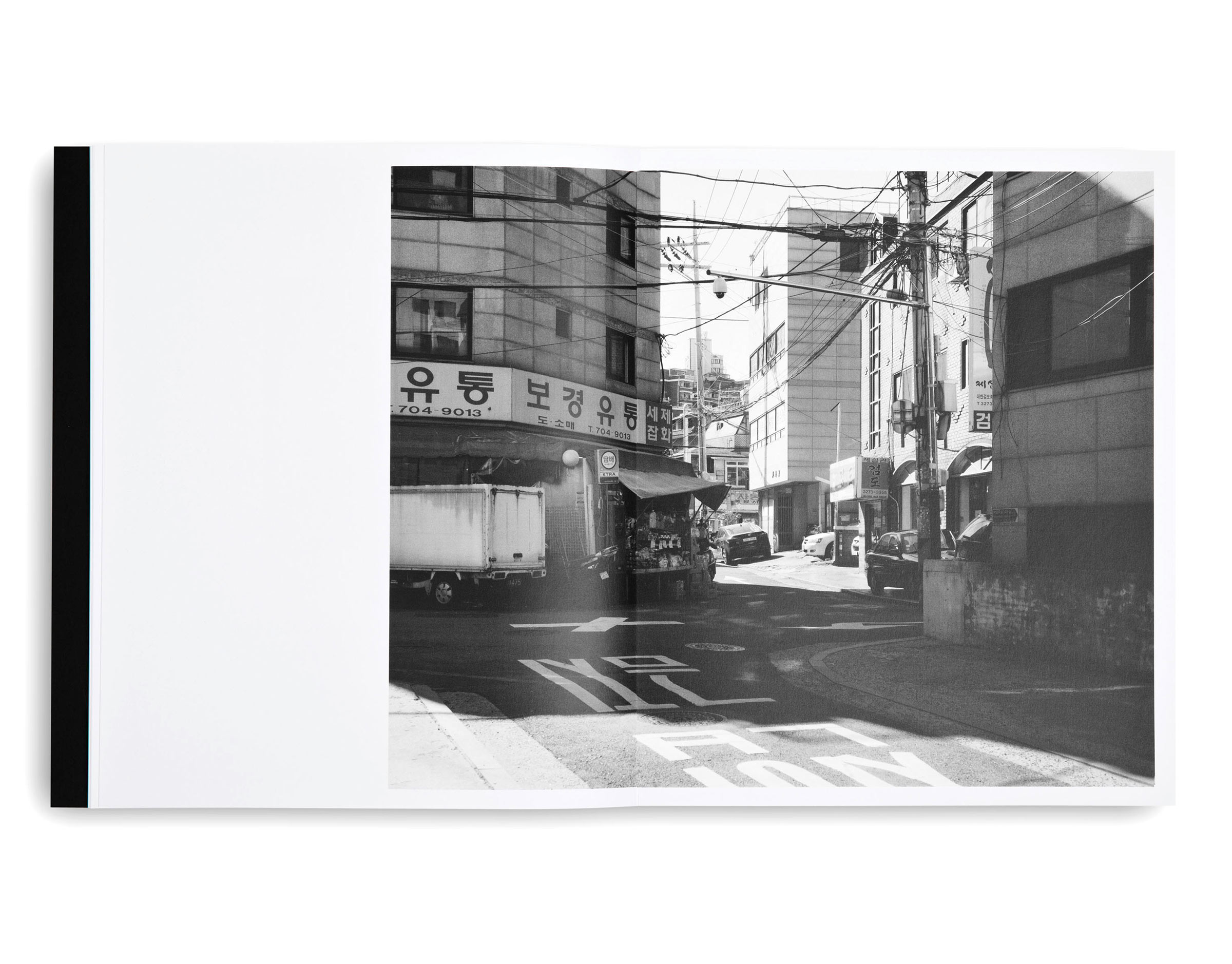 Masse opens with an image revealing a set of shiny bronze doors. The eye is drawn to a black box angled above its entrance. What does it see? And who is watching? Though the questions remain unanswered, the tone is set for the following pages, which reveal Gessner’s artistic dexterity as he moves seamlessly from hyper-stylised shots of hardware to classic architectural photos, collaged Fitbits, smudged impressions tracing the movement of fingerprints on a screen, and cropped streetscapes in Berlin, Seoul, and New York. Rooftop satellites, radio towers and CCTV cameras are extracted from their surroundings and examined in a detached, exacting style.